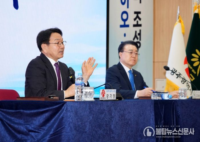 이어진 질의응답 시간에는 강기정 광주시장과 구복규 화순군수가 직접 참석자들의 질문에 답변하며 통합 이후 변화에 대해 논의했다.