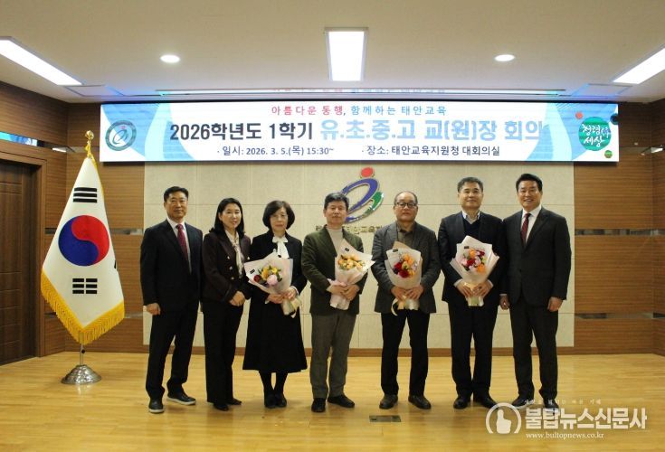 불탑뉴스신문사 차복원 기자 | 충청남도태안교육지원청은 3월 5일 태안교육지원청 대회의실에서 관내 유‧초‧중‧고 교장(원장), 교육지원청 담당자 60명이 참석한 가운데 2026학년도 1학기 유‧초‧중‧고 교장(원장) 회의를 개최했다.