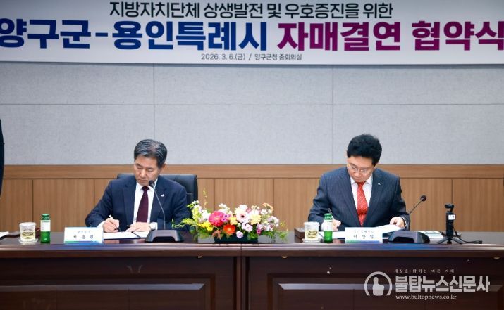 불탑뉴스신문사 차복원 기자 | 용인특례시는 6일 강원특별자치도 양구군과 자매결연을 하고, 두 도시의 교류와 발전을 위해 적극 협력하기로 했다.