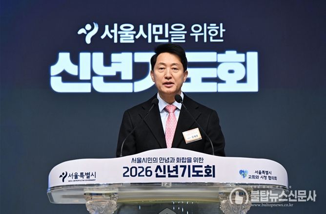 불탑뉴스신문사 차복원 기자 | 오세훈 서울시장은 9일 오전 7시 20분, 신길교회(영등포구 영등포로67가길 9)에서 서울특별시교회와시청협의회 주최로 열린 ‘2026 신년기도회’에 참석해 서울 시민의 안녕과 화합을 위해 기도했다.
