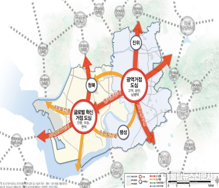생활권은 크게 동부와 서부 2개 권역으로 나눴다. 동부생활권은 미래산업인 반도체 특화단지와 산·학·연 클러스터(산업집적단지) 육성에 집중한다. 서부생활권은 친환경 수소 에너지 특화단지와 항만·산업도시 구현을 핵심 발전 전략으로 제시했다.