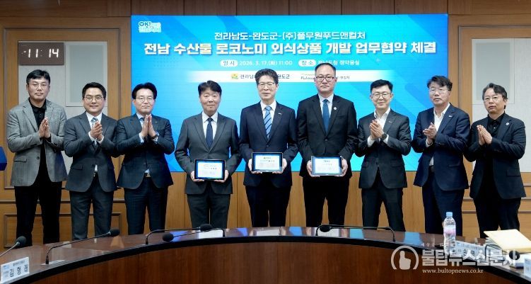 협약식에는 황기연 전남도지사 권한대행, 이범우 완도부군수, 김경순 ㈜풀무원푸드앤컬처 부사장이 참석해 상호 협력의지를 확인했다.