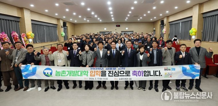 불탑뉴스신문사 차복원 기자 | 고창군이 지난 17일 농업인회관 3층 대강당에서 ‘2026년 고창농촌개발대학 입학식’을 성황리에 개최했다.
