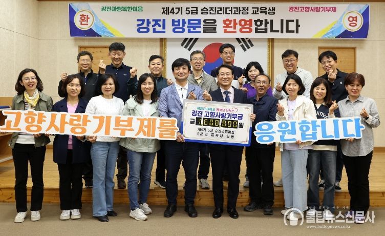 강진군은 지난 9일, 지방자치인재개발원 제4기 5급 승진리더과정 6분임 교육생이 교육기간 중 현장학습 차 강진을 찾아 고향사랑기부금 160만원을 기탁했다고 밝혔다.