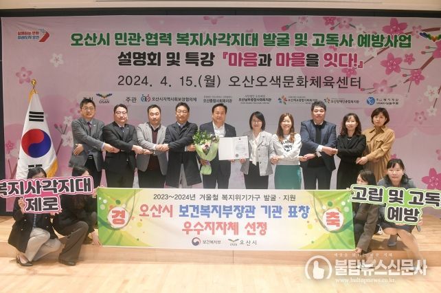 불탑뉴스신문사 송행임 기자 | 오산시는 2023-2024년 겨울철 복지 위기가구 발굴 지원 우수 지자체 평가에서 보건복지부 장관 표창을 수상했다고 15일 밝혔다.