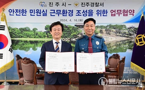 불탑뉴스신문사 송행임 기자 | 진주시와 진주경찰서는 지난 16일 ‘진주시와 읍·면·동 민원실의 안전한 근무환경 조성을 위한 업무협약’을 체결했다.