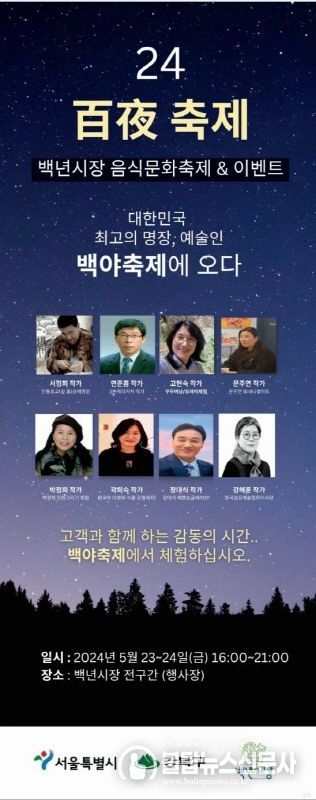 불탑뉴스신문사 송행임 기자 | 오는 5월 23일(목) 14:00~21:00, 서울 백년시장에서 야간음식문화축제인 ‘백야(百夜) 축제’가 개최된다. 이번 행사는 지난 2월 서울시에서 진행한 2024년 ‘야간음식문화축제 및 이벤트 지원 공모사업’에 선정된 사업이다. 백년시장은 오랫동안 야시장 개장을 준비해오던 상황에서 공모사업에 선정되어 행사를 추진하게 됐다.