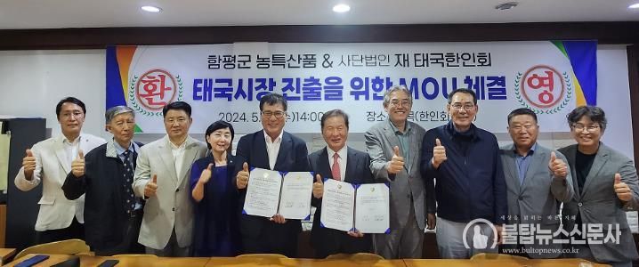 불탑뉴스신문사 송행임 기자 | 전남 함평군이 사단법인 재태국한인회와 우수 함평 농특산품의 태국시장 진출 협력을 위한 MOU를 체결했다.