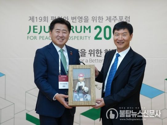 오영훈 제주특별자치도지사와 류샤오밍(刘晓明) 중국 하이난성장은29일 오후 제19회 평화와 번영을 위한 제주포럼에서 만나 문화예술·경제·신산업·인적 교류 등 다양한 교류협력 방안을 모색했다.