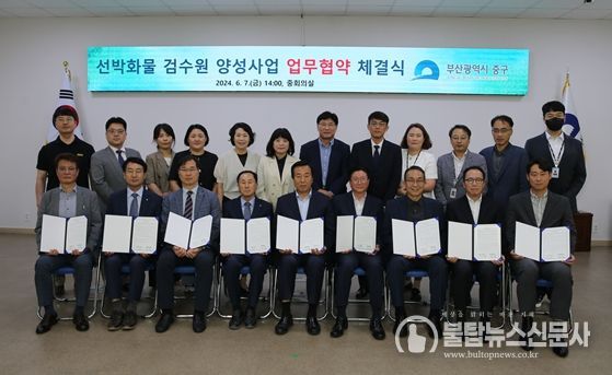 불탑뉴스신문사 송행임 기자 | 부산 중구청은 7일 오후 2시 중구청 중회의실에서 선박화물 검수업체 6개社 및 원도심 특성화고 3개校와 함께 ‘선박화물 검수원 양성사업’을 위한 업무협약을 체결했다.