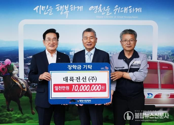불탑뉴스신문사 송행임 기자 | 지난 7일 대륙전선 주식회사에서 1,000만 원의 장학금을 (재)영천시장학회에 기탁했다.