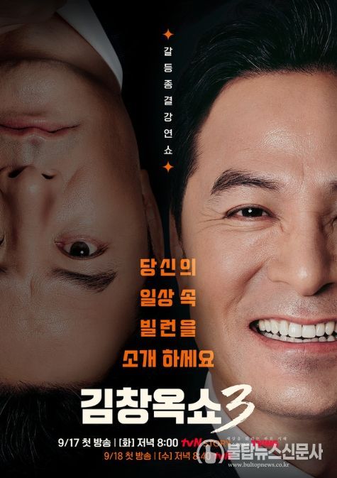 불탑뉴스신문사 한민석 기자 | 9월 17일(화) 저녁 8시 tvN STORY에서 첫 방송을 앞둔 ‘김창옥쇼3’가 1화 예고 영상을 전격 공개, 초강력해진 갈등과 함께 돌아온 김창옥의 재치 있는 강연을 기대케 한다.