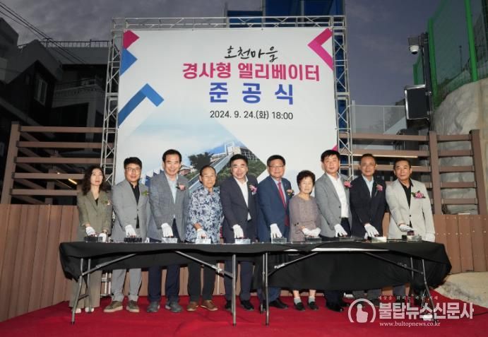 불탑뉴스신문사 송행임 기자 | 부산진구는 24일 오후 6시, 망양로945번길 26 일원에서 ‘호천마을 경사형 엘리베이터 조성사업’ 준공·점등식을 개최했다고 밝혔다.