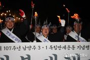 불탑뉴스신문사 차복원 기자 | 남양주시는 27일 화도읍 월산교회에서 남양주문화원 주최로 열린 3.1독립만세운동 기념행사가 성황리에 마무리했다고 밝혔다. 이번 행사는 남양주 지역에서 전개된 독립만세운동의 역사적 의미를 되새기고, 지역 독립운동 정신을 계승하기 위해 마련됐다. 행사에는 주광덕 남양주시장을 비롯해 조성대 남양주시의장, 남양주문화원장, 경기북부보훈지청장, 광복회 남양주시지회장, 도·시의원, 독립유공자 후손과 시민 등 300여 명이 참석해 독립 정신을 되새겼다. 행사는 총 3부로 운영됐으며, 1부에서는 기념식과 기념예배가 진행됐다. 시립합창단의 식전공연을 시작으로 기념예배, 주광덕 시장의 경축사와 독립선언서 낭독 등이 이어졌다. 2부에서는 월산교회에서 마석역 광장까지 ‘횃불 대행진’을 진행했다. 풍물패와 군부대의 인도 아래 시민들이 직접 횃불을 들고 행진하며 1919년 당시의 긴박했던 만세 운동 현장을 재현했다. 마지막으로 3부에서는 모든 참석자들이 마석역 광장에서 삼일절 노래 제창과 만세삼창을 외치며 행사의 대미를 장식했다. 주광덕 시장은 “3.1운동의 정신은 과거에 머물지 않