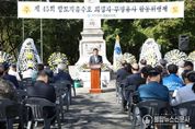 불탑뉴스신문사 차복원 기자 | 자유민주주의를 수호하다 희생된 영령들의 넋을 기리는 제45회 합동위령제가 24일 정읍 내장산 향토자유수호기념비 앞에서 엄수됐다. 한국자유총연맹 정읍시지회 주관으로 열린 이날 위령제에는 유가족과 각계 인사 70여 명이 참석해 호국영령의 숭고한 헌신을 추모하고 안보 의식을 다졌다. 이날 위령제에는 이학수 시장·박일 시의회 의장·최용훈 정읍교육지원청 교육장·박상훈 정읍경찰서장을 비롯한 기관단체장과 자유수호 희생자 유가족, 연맹 회원 등 70여 명이 참석해 희생자들의 넋을 기렸다. 행사는 엄숙한 분위기 속에서 경과보고·종교의식·조시낭독·추념사·추도사 등의 순서로 진행됐다. 심정술 회장은 추념사에서 “자유수호를 위해 희생하신 호국영령의 뜻을 가슴 깊이 되새기며 자유 민주주의를 지켜 나가겠다”고 말했다. 이학수 시장은 추도사를 통해 “우리가 누리는 자유와 번영은 호국영령들의 희생과 헌신 위에 세워진 결실”이라며 “위령제가 호국영령의 숭고한 정신을 되새기고 안보의식을 다지는 뜻깊은 시간이 되기를 바란다”고 전했다. 한편, 한국자유총연맹 정읍시지회는 매년 1