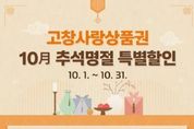 불탑뉴스신문사 송행임 기자 | 고창군이 추석을 맞아 군민 생활안정과 지역경제 활성화를 위해 ‘고창사랑상품권 특별할인 행사’를 진행한다. 이번 행사는 10월 한 달간 진행된다. 이번 특별할인은 △상품권 구매시 10% 선할인 △고창사랑카드 결제시 10% 캐시백 적립을 통해 최대 20% 혜택을 받을 수 있도록 구성됐다. 특히, 월 구매한도를 100만 원까지 확대해 군민들의 혜택을 더욱 강화했다. 예를 들어, 10만원 상품권 구매 시 10%(1만 원) 선할인을 적용받아 9만원에 구매하고, 이후 고창사랑카드로 결제하면 결제금액의 10%가 캐시백으로 적립돼 실질적으로 최대 20% 혜택을 누릴 수 있다. 다만, 선할인(10%)이 적용된 금액은 캐시백 적립 대상에서 제외된다. 심덕섭 고창군수는 “이번 추석 명절 특별 할인을 통해 군민들께는 생활비 부담을 덜어드리고, 지역 소상공인들에게는 매출 증대 효과가 기대된다”며 “특히, 군에서 지급하는 군민활력지원금과 정부의 민생소비쿠폰이 더해져 군민 모두가 더욱 넉넉한 추석 명절을 보내시길 바란다”고 밝혔다. 한편, 고창사랑상품권은 전통시장과 지역