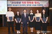 불탑뉴스신문사 송행임 기자 | 진주시복지재단은 8일 제이스퀘어호텔 4층 연회장에서‘2025년 직원 한마음 행사’를 개최해 재단 관계자와 8개 수탁운영시설 전 직원 등 약 100명이 참석한 가운데 소통과 화합의 장을 열었다. 이번 행사는 2024년 5개 시설을 추가로 수탁해 총 8개 공공 사회복지시설 체계를 갖춘 이후 재단 산하 전 직원이 처음으로 한자리에 모인 합동 행사로, 협업 체계 정립과 조직 결속 강화, 현장 실행력 제고를 목표로 기획됐다. 재단은 이번 행사를 계기로 아동·보육·장애·지역 돌봄 등 전 분야에서 복지서비스 질을 한 단계 높이고 시민이 체감하는 긍정적 변화를 만드는 데 역량을 집중할 계획이다. 특히,‘행복누리어린이집’이전과 같은 현장 중심의 변화가 보육 환경 개선과 만족도 제고로 이어지도록 시설 운영을 지원할 방침이다. 조규일 진주시장은 격려사를 통해 “재단과 수탁시설 직원들의 헌신적인 노력 덕분에 진주시 복지서비스가 나날이 발전하고 있다”며 “앞으로도 시민 중심의 따뜻한 복지 실현을 위해 시에서도 지속적인 협력과 지원을 아끼지 않겠다”고 말했다. 이성갑 이사장은 “기