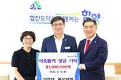 불탑뉴스신문사 송행임 기자 | 함양군은 8일 오전, 함양읍에 거주하는 신정찬·황보형랑 부부로부터 지역의 어려운 이웃을 위해 써 달라며 이웃돕기 성금 100만 원을 기탁받았다고 밝혔다. 이날 군청에서 열린 기탁식에서 신정찬 씨는“연일 이어지는 무더위에 생활이 더욱 어려워진 이웃들을 위해 조금이나마 도움을 드리고자 가족들의 작은 정성을 모아서 성금을 기탁하게 됐다”라고 따뜻한 뜻을 전했다. 이에, 진병영 함양군수는 “소중한 성금을 전달해 주신 마음에 감사드리며, 기탁해 주신 성금은 필요한 분들에게 정성껏 전달될 수 있도록 하겠다.”라고 밝혔다. 이날 기탁된 성금은 경남사회복지공동모금회를 통해 관내 저소득 취약 계층에 전달될 예정이다.