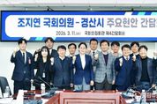 불탑뉴스신문사 차복원 기자 | 경산시는 11일 국회의원회관 제4간담회실에서 조지연 국회의원과 간담회를 개최하고, 2027년 정부예산 확보 방안과 지역 주요 현안사업에 대하여 심도 있게 논의했다. 이번 간담회는 시의 미래 성장 동력이 될 핵심 사업들이 정부예산안에 최종 반영될 수 있도록 국회와 협력체계를 강화하고, 국비 확보 전략 및 주요 현안에 대해 논의하기 위해 마련됐다. 아울러 정부의 지역발전 정책 기조에 발맞춰 AI 기반 미래 산업육성, 재난안전 인프라 구축, 생활밀착형SOC 확충 등 경산시 주요 현안사업에 대해 추진현황을 공유하고 협력 방안을 심도있게 논의했다. 특히 대경권AX 혁신 거점 조성, 경북 제조산업 Physical AI 기반 무인화·무재해 공장 대전환 지원사업 등 미래 산업 기반 구축 사업과 함께 동서 자연재해 위험 개선지구 정비, 하천 안전관리 스마트 통제시스템 구축, 국도 4호선 하양 남하~부호 구간 확장, 자인공설시장 제2주차장 조성 등 시민 생활과 밀접한 사업들의 정부예산 반영 필요성에 대해 의견을 나눴다. 조지연 국회의원은“오늘 논의된 사업들이 경산의 미래 경쟁력을 높이고