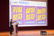 불탑뉴스신문사 차복원 기자 | “위기의 순간, 광주는 달랐습니다. 그리고 정책도 달랐습니다. 지난 4년의 광주의 변화입니다. 그 중심에 광주시민과 공직자 여러분이 있었습니다. 이제 우리는 특별시민이 됩니다. 인재특별시, 일자리특별시, 꿀잼특별시로 더 부강한 기회특별시를 함께 만듭시다.” 광주광역시(시장 강기정)는 9일 시청 대회의실에서 ‘인(in) 광주, 우리가 만들어가는 봄’을 주제로 ‘3월 정례조회’를 열고, 대한민국 최초의 광역지자체 간 통합으로 출범하게 될 전남광주통합특별시의 미래 구상을 공유했다. 이날 정례조회에는 직원 300여명이 참석해 광주전남 통합 준비과정과 지난 4년 간의 시정 성과를 되돌아보고, 공직자 서로를 격려하는 시간을 가졌다. 강기정 시장은 “광주는 몇 년 전만 해도 상상하기 어려웠던 큰 변화를 만들어냈다”며 “지난 4년 동안 광주는 위기의 순간에도, 정책 혁신에서도, 미래 준비에서도 늘 달랐다”고 평가했다. 강 시장은 먼저 위기 속에서 보여준 광주의 대응력을 언급했다. 그는 “2024년 12월3일 계엄의 밤, 광주시청의 불은 꺼지지 않았다”며 “행정안전부가 청사 폐쇄를 지