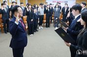 불탑뉴스신문사 차복원 기자 | 이장우 대전시장은 30일 시청 대회의실에서 2025년도 대전시 새내기 공직자 44명에게 임용장을 수여했다. 이장우 시장은 “대전시 공무원으로 임용된 것을 진심으로 축하한다”라면서 “앞으로 동료들과 협업하고 시민들과 적극적으로 소통하며 맡은 바 최선을 다하는 책임 있는 공직자가 되어주길 바란다”라고 당부했다.