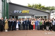 불탑뉴스신문사 차복원 기자 | 완주군이 삼례 ‘쉬어가삼[례:]’ 유휴공간을 친환경 관광 거점으로 새롭게 탈바꿈 시키고, 체류형 관광객 유치를 위한 힘찬 시동을 걸었다. 30일 완주군은 삼례 ‘쉬어가삼[례:]’에서 ‘e-BIKE 자전거 대여소’ 개소식을 열었다. 이 자리에는 유희태 완주군수와 군의원, 지역주민 등 100여 명이 참석했다. 이날 첫선을 보인 자전거 대여소는 유휴공간을 활용해 지역 관광의 핵심 거점으로 재탄생시켜 주목을 받았다. 문화체육관광부의 ‘지역 자전거 여행 활성화’ 국가 공모사업에 선정돼 국비를 지원받아 추진됐으며, 올해부터 내년까지 2개년에 걸쳐 진행될 예정이다. 자전거 대여소는 삼례역에 내린 관광객 및 완주군민들에게 근대문화유산인 삼례문화예술촌을 지나 만경강 자전거길로 나아가는 ‘친환경 생태관광의 관문’ 역할을 수행하게 된다. 유희태 완주군수는 “버려진 공간을 재생해 완주 관광의 새로운 원동력을 만들고, 군민 여러분과 함께 그 출발을 축하하게 되어 매우 기쁘다”며 “오늘 문을 연 자전거 대여소를 시작으로 완주를 찾는 모든 분들이 만족하는 체류형 관광도시