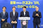 불탑뉴스신문사 차복원 기자 | 전주시가 완주·전주 통합을 통해 누구나 다양한 기회와 행복을 누리고, 누구나 뿌리내리며 살고 싶은 도시를 만들어서 한강의 기적을 뛰어넘는 만경강의 기적을 이뤄내겠다는 강한 의지를 내비쳤다. 우범기 전주시장은 30일 시청 4층 회의실에서 ‘완주-전주 통합시 비전 발표 기자회견’을 열고 “지방 소멸의 절박한 위기 앞에서 완전(完全)한 도시, 완전(完全)한 미래로 나아가기 위한 완주·전주 통합의 염원이 날로 뜨겁고 깊어지고 있다”라며 “완주와 전주가 하나된 힘으로 함께 미래를 그리고 함께 미래로 나아간다면, 한강의 기적을 뛰어넘는 만경강의 기적을 만들 수 있을 것”이라고 밝혔다. 이번 완주-전주 통합시 비전은 통합 이후 완주 지역을 중심으로 통합시 미래 발전 방향을 담은 것으로, 오는 2040년까지 통합시를 △100만 광역도시 △AI산업 기반 경제산업 중심도시 △가장 살기 좋은 직주락(職住樂) 정주도시로 만드는 것이 핵심이다. 이를 위해 시는 오는 2040년까지 장기적인 시각을 가지고 약 8.8조 원을 투자해 △통합시 5대 메가 프로젝트 △정주 혁신 7개 프로젝트 △K-문화관광벨트 구