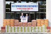 불탑뉴스신문사 차복원 기자 | 대구경북첨단의료산업진흥재단은 지난 29일, 저소득 취약계층을 위해 10kg 백미 50포, 샤인머스켓 50박스, 라면 50박스, 간이소화기 50개를 동구청에 기탁했다. 이번 기탁은 재단 임직원들이 대구 동구의 동서시장을 방문해 명절 성수품과 생필품 등을 직접 구매한 후, 해당 물품을 동구청에 전달하는 방식으로 진행됐다. 기탁한 물품은 동구 내 취약계층과 복지 사각지대 이웃들에게 전달 될 예정이다. 박구선 이사장은 “작은 정성이지만 어려운 이웃들이 따뜻한 명절을 보내는 데 도움이 되기를 바란다”고 말했다. 윤석준 동구청장은 “추석을 맞아 이웃을 먼저 생각해주신 대구경북첨단의료산업진흥재단에 깊은 감사를 드린다”며 “기탁해주신 물품은 도움이 필요한 분들께 소중히 전달하겠다”고 했다.