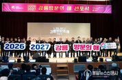 불탑뉴스신문사 송행임 기자 | 강릉시가 2027년까지 국내 관광객 5,000만 명, 외국인 관광객 50만 명 유치를 목표로 하는 ‘2026-2027 강릉 방문의 해’의 힘찬 출발을 공식 선언했다. 강릉시는 23일 금요일 오후 강릉시청 대강당에서 김홍규 강릉시장, 최익순 강릉시의회 의장, 최길영 국제관광도시 시민실천운동 추진위원회 위원장을 비롯해 유관 기관장과 시민 등 1,000여 명이 참석한 가운데 ‘2026-2027 강릉방문의 해’ 선포식을 성황리에 개최했다고 밝혔다. 이번 선포식은 ‘23년 강릉이 국제관광도시비전, ‘24년 국제관광도시 시민캠페인 추진위원회 발대식에 이어, 국제관광도시로 도약하기 위한 실천적 사업을 천명하고 전 시민의 참여 분위기를 조성하기 위해 마련됐다. 행사는 축하 공연, 추진계획 발표, 선포 퍼포먼스 및 BI(Brand Identity) 로고 공개 순으로 진행됐다. 심상복 문화관광해양국장은 ‘강릉 방문의 해’의 핵심 목표와 주요 추진 사업을 발표하면서 관광객이 좀 더 머물수 있도록 관광 콘텐츠를 고도화하고, 체류형 관광인프라와 특화 관광상품을 확대해 국내외 관광객 유치에 총력을 기울일