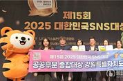 불탑뉴스신문사 차복원 기자 | 강원특별자치도는 ‘2025 대한민국 SNS 대상’에서 공공부문 종합대상(과학기술정보통신부 장관상)을 수상했다. 이번 수상으로 강원특별자치도는 2022년 ‘올해의 SNS’ 유튜브 대상, 2023년 인스타그램 최우수상, 2024년 유튜브 대상에 이어 4년 연속 수상이라는 성과를 거뒀다. 그동안 개별 SNS 채널에서 우수한 성과를 보여온 강원특별자치도는 올해 전체 SNS 운영 성과를 종합적으로 평가하는 부문에서 최고 영예인 종합대상을 받으며, 모든 채널에서 균형 잡힌 소통 역량을 입증했다. ‘대한민국 SNS 대상’은 한국소셜콘텐츠진흥협회가 주관하고 과학기술정보통신부가 후원하는 국내 최고 권위의 상으로, 사회관계망서비스(SNS) 활용 현황과 소통 역량을 종합적으로 평가해 우수 공공기관과 기업을 선정·시상한다. 올해는 정부 부처, 광역·기초지자체 등 12개 부문 118개 기관이 치열하게 경쟁했다. 강원특별자치도는 ‘강원잇다’를 통해 타 공공기관과 차별화된 유기적 온라인 협업 홍보모델을 구축하고, 다양한 주제의 콘텐츠와 캠페인으로 활발히 소통한 점이 높이 평가됐다.