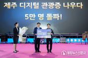 불탑뉴스신문사 송행임 기자 | 제주특별자치도는 24일 제주 디지털 관광증 ‘나우다’ 가입자가 5만 명을 돌파했다고 밝혔다. 8월 11일 발급을 시작한 지 두 달여 만이다. 나우다는 제주 관광의 가치를 디지털로 확산하고 관광객에게 다양한 혜택을 제공하기 위해 올해 신규 추진한 사업이다. 나우다 가입자는 지난 11일 4만 명을 돌파한 이후 약 2주 만에 5만 명을 넘어서며 빠른 증가세를 보이고 있다. 네이버와 협업해 가입자에게 네이버 500포인트를 부여하는 온라인 프로모션과 5,000여 명의 회원이 제주를 방문한 한국 청년회의소(JC) 전국대회 등 오프라인 홍보 이벤트 추진의 결과다. 제주도는 한국 JC 전국대회 개막식 부대행사로 나우다 가입 및 제주 특산품 증정 이벤트를 진행했다. 오영훈 지사는 나우다 가입 5만 명 돌파에 힘을 보탠 문관백 한국 JC 회장에게 감사를 표했다. 나우다 가입자 혜택도 확대된다. 11월 1일부터 12월 31일까지 나우다 가입자 전체에게 도내 공영관광지 27개소 입장료를 도민 수준으로 할인해주는 혜택이 적용된다. 5만 명 달성 기념 한시적 조치다.