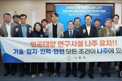 불탑뉴스신문사 차복원 기자 | 전라남도 나주시가 정부의 차세대 전력망(K-그리드) 구축 정책에 발맞춰 차세대 전력산업 중심도시로 도약하기 위한 지역 전략 마련에 나섰다. 나주시는 22일 시청 이화실에서 ‘이재명 정부의 에너지 정책과 나주의 역할’을 주제로 정책 간담회를 열고 정부의 전력망 혁신 정책 대응 방향과 기관 간 협력 방안을 논의했다고 밝혔다. 이날 간담회에는 윤병태 시장을 비롯해 전남테크노파크, 녹색에너지연구원, 에너지밸리기업개발원, 한국기계전기전자시험연구원, 한국전자기술연구원, 한국에너지공과대학교, 동신대학교 등 지역 에너지 유관기관과 대학 관계자들이 참석했다. 참석자들은 인공태양(핵융합) 연구시설 유치, 직류(DC) 기반 전력산업 육성, K-그리드 인재 및 창업 밸리 조성 등 주요 과제를 공유하고 R&D, 인프라, 기업 지원, 인재 양성 등 4대 분야별 협력 방안을 집중적으로 논의했다. 또한 간담회 참석자들은 ‘인공태양 연구시설 나주 유치’를 염원하는 퍼포먼스를 진행하며 정부 공모사업 대응 의지를 함께 다졌다. 참석자들은 “나주는 에너지밸리 혁신도시를 중심으로 연구와 산업