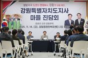 불탑뉴스신문사 차복원 기자 | 김진태 강원특별자치도지사는 '강원특별법' 군사특례를 활용한 첫 권한 행사로 지난 3월 군사규제 개선 성과를 거둔 철원군을 11월 14일 방문해 도지사 ‘마을진담회’(진솔한 +간담회)의 네 번째 자리를 마련했다. 이번 진담회는 주민과의 소통을 강화하고, 현장의 의견을 보다 폭넓게 듣기 위해 철원군을 김화·갈말권역과 철원·동송권역의 두 개 권역으로 나누어 진행했다. 이날 행사에는 김진태 지사를 비롯해, 한기호 국회의원(춘천, 철원, 화천, 양구을), 이현종 철원군수, 김정수·엄기호 도의원, 이장, 주민자치위원, 노인회 등 각계각층의 주민 300여 명이 참석해 뜨거운 관심 속에 진담회가 시작됐다. 이현종 철원군수는 “이번 방문은 지사님께서 철원을 아끼고 주민의 애로사항을 듣고 신속히 반영하고자 하는 마음의 표현”이라고 말했다. 이어 “철원군은 군사규제 100만평 완화, 농업진흥지역 3만 4천 평 해제 등 규제 개선의 가시적 성과를 이뤄냈다”고 설명했다. 또한, “수돗물 하수처리시설 개선을 위해 도비 약 60~70억 원을 지원받아 추진 중이며, 신철원과 와수 지역은 그동안