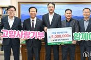 불탑뉴스신문사 송행임 기자 | 거창군은 지난 10일 농협중앙회 거창향우회가 고향사랑기부금 500만 원을 기부했다고 전했다. 이날 기부식에는 이종삼 농협중앙회 울산본부장, 최도영 김해농수산물종합유통센터 지사장, 이희열 농협중앙회 거창군지부장, 신화범 북부농협조합장, 김종두 수승대농협조합장 등이 참석해 고향에 대한 깊은 애정을 담아 기부금을 전달했다. 농협중앙회 거창향우회는 거창 출신으로 농협중앙회와 농협은행에 재직하고 있는 향우들의 모임으로 서울과 경남 지역에 재직하고 있는 30여 명의 회원으로 구성되어 있으며, 고향사랑기부제 시행 첫해 500만 원 기부에 이어 올해도 고향의 발전을 응원하며 기부에 동참했다. 이종삼 농협중앙회 울산본부장은 “고향을 살리고 지역의 농가에도 보탬이 되는 고향사랑기부제에 동참하게 되어 매우 뜻깊게 생각한다”며 “앞으로도 고향의 발전을 위해 지속해서 관심을 가지고 다양한 방식으로 고향사랑을 실천하겠다”고 말했다. 구인모 거창군수는 “고향에 대한 애틋한 마음을 기부로 전해주신 농협중앙회 향우님들께 진심으로 감사드린다”며 “소중한 뜻이 지역발전에 큰 힘이 될 것으로 기대한다”