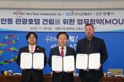 불탑뉴스신문사 차복원 기자 | 안동시는 11월 28일 시청 소통실에서 세계적인 호텔․리조트 그룹인 하드락 인터내셔널(Hard Rock International, Imc.) 및 ㈜니즈퍼샌드와 ‘안동 하드락 호텔 건립을 위한 상호협력 양해각서(MOU)’를 체결했다. 이번 협약은 한국문화테마파크와 안동문화관광단지 일원에 글로벌 브랜드인 하드락 호텔(Hard Rock Hotel)을 유치함으로써, 지역 관광산업 경쟁력을 강화하고 지역경제 활성화를 도모하기 위해 마련됐다. 특히 이번 하드락 호텔 유치는 인근 안동국제컨벤션센터와의 시너지가 기대된다는 점에서 주목받고 있다. 시는 글로벌 브랜드 호텔과 연계한 MICE 관광 기반을 구축함으로써 대규모 국제행사 유치 경쟁력을 확보하고, 고부가가치 관광객 유입을 확대한다는 계획이다. 이날 협약에 따라 세 기관은 ▲성공적인 사업 추진을 위한 협력체계 구축 ▲신속한 행정 지원 ▲제반 여건 조성 및 사업 추진 등에 역량을 집중하며 구체적인 실행 방안을 협의해 나갈 예정이다. 권기창 안동시장은 “세계적인 브랜드인 하드락 호텔의 유치는 안동의 관광 지형을 넓히고 도시 브랜드를