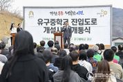 불탑뉴스신문사 차복원 기자 | 공주시는 유구중학교 학생과 지역 주민의 안전한 보행 환경을 조성하고 원활한 차량 통행을 위해 추진한 유구중학교 진입도로 개설사업을 마무리하고 개통식을 개최했다고 밝혔다. 시는 지난 5일 유구중학교에서 최원철 시장을 비롯해 시·도의원, 지역 단체장, 학교 관계자, 주민 등 80여 명이 참석한 가운데 유구중학교 진입도로 개설사업 개통식을 열었다. 이번 사업은 총사업비 11억 5천만 원을 투입해 폭 10.0~11.5미터, 연장 141미터 규모로 추진됐다. 2025년 2월 도시계획시설사업 실시계획 인가를 받은 뒤 공사를 진행해 최근 공사를 마무리했다. 그동안 이 구간은 도로 폭이 좁아 차량 교행이 어렵고 등하굣길 시간대에는 학생과 차량이 뒤섞이면서 안전사고에 대한 우려가 꾸준히 제기되어 왔다. 특히 학교 관계자와 학부모들이 학생 안전 문제에 대해 지속적으로 의견을 제시함에 따라 시는 이를 반영해 해당 사업을 추진했다. 이번 도로 개설로 학생들의 안전한 통학 기반이 마련되고 차량 통행 여건도 크게 개선되면서 지역 교통환경 개선과 정주 여건 향상에 도움이 될 것으로 기대된다. &