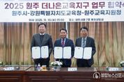 불탑뉴스신문사 차복원 기자 | 강원특별자치도교육청은 원주시, 원주교육지원청과 11월 18일 원주시청에서 ‘원주 더나은교육지구 연장지정 업무협약’을 체결했다. 이번 협약은 2018년 제1기 4년, 2022년 제2기 4년 운영에 이어 2026년부터 4년간 제3기 더나은교육지구 사업을 새롭게 추진하기 위해 마련됐다. 세 기관은 ‘배움과 성장, 문화예술로 동행하는 원주’라는 비전 아래 학교와 지역이 함께 성장하는 지속가능한 교육생태계 조성을 위해 매년 4억 원(교육청 2억 원, 군 2억 원)을 공동 지원한다. 원주 더나은교육지구는 학생의 전인적 성장을 지원하는 지역 중심 교육협력 사업으로, 학교·지자체·지역사회가 협력하는 ‘배움과 성장의 지역교육공동체’를 구축하고 있다. 지구중점 공동사업으로 △‘원주 한바퀴’ 원주 탐방 프로젝트 △‘원주 한바탕’ 원주 체험 프로젝트를 운영해 학생들이 지역의 역사·문화·자연을 탐방하며 원주 시민으로서의 정체성과 자긍심을 기를 수 있도록 돕는다. ‘예술 피움’ 사업은 △‘꿈키움’ 찾아가는 문화예술 소공연 △‘꿈그림’ 그림책·영상 창작 프로젝트 △‘꿈도약’ 리더십 스포츠 프로