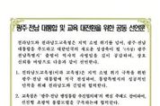 불탑뉴스신문사 차복원 기자 | 전라남도교육청과 전라남도가 광주·전남 대통합과 교육 대전환을 위한 공동선언문을 발표했다. 김대중 교육감과 김영록 지사는 8일 오전 전남도청에서 만나 최근 논의되고 있는 광주·전남 통합과 관련, “지역 소멸 위기를 넘어 광주·전남 대통합을 주도하고, 대한민국의 새로운 성장축이 될 ‘(가칭) 광주전남 특별시’ 출범이 역사적 사명임을 깊이 공감한다.”며 이같이 선언했다. 전남교육청은 4개 항으로 된 선언문에서 지역 소멸 위기 극복을 위한 광주·전남 대통합에 적극 찬성하며, 통합 특별시의 성공적인 안착을 위해 전남도와 긴밀히 협력하기로 했다. 이어, ‘광주·전남 행정통합 추진협의체’에 핵심 주체로 참여하여, 선진형 초광역 통합모델을 구축하는 데 협력하기로 했다. 또한, 전남교육청은 교육·학예 분야와 관련된 사항에 대해 광주광역시교육청과 함께 법안 작성 및 검토에 앞장서기로 했다. 이와 함께, 전남교육청과 전남도는 통합 과정에서 교육 현장의 목소리를 반영하며, 교육 현장이 체감할 수 있는 교육 대전환과 미래 인재 양성을 위해 모든 역량을 결집한다는 데 합의했다. &