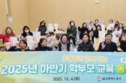불탑뉴스신문사 차복원 기자 | 울산 동구는 12월 4일 오후 2시부터 4시까지 동구 청소년 진로지원센터 3층에서 ‘2025년 하반기 학부모 교육 동행(동구와 행복한) 반상회’를 개최했다. ‘학부모 교육 동행 반상회’는 관내 초·중·고등학교 학부모 30여 명이 참석했으며, 학부모 대상 진로 체험과 구청장과의 대화로 나뉘어 진행됐다. 학부모들은 강사의 지도에 따라 ‘플라워 박스 만들기’ 체험을 하며 자녀의 진로 교육을 간접적으로 경험하는 시간을 가졌다. 이어 김종훈 동구청장과 함께하는 ‘구청장과의 대화’가 열려 구청장과 학부모들이 자유로운 분위기 속에서 지역 교육과 생활 전반에 대한 다양한 의견을 나눴다. 김종훈 동구청장은 “아이들의 성장과 행복을 위해 학부모님들의 목소리에 귀 기울일 수 있었던 뜻깊은 시간이었다”라며, “앞으로도 학교와 가정, 지역이 함께하는 교육 공동체를 만들어가겠다”라고 말했다.