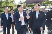 불탑뉴스신문사 차복원 기자 | 김관영 전북특별자치도지사는 9월 10일부터 11일까지 이틀간 중앙부처 장관들을 잇달아 만나 전북의 미래 성장동력을 확보하기 위한 릴레이 건의 활동을 펼쳤다. 최근, 국무총리를 포함한 여러 부처의 장관급 인사들이 연이어 전북을 방문하는 등 전북에 대한 중앙정부의 관심이 높아진 상황에서, 이번 김 지사의 활동은 이러한 분위기를 지역 발전의 기회로 삼기 위해 전북의 핵심 현안사업에 대한 정부 지원을 요청하고, 국회 예산심의 과정에서 국가예산 반영 등을 호소하기 위한 적극적인 움직임이다. 김 지사는 “새 정부 출범 초기는 국정동력이 강한 시기인 만큼 장·차관 등 중앙부처의 주요 관계자들이 전북을 방문하는 기회를 적극 활용하여 밀착 면담을 통해 지역 현안 해결의 절실함을 피력하는 게 중요한 시기”라는 점을 강조했다. 먼저 10일, 김정관 산업통상자원부장관을 만나 대한민국 에너지 전환의 중심지로 도약할 수 있도록 ▲새만금 RE100 산업단지 선도지역 지정, ▲새만금 수상태양광 1단계 발전사업 추진 지원, ▲서남권 해상풍력 집적화단지 신속 추가 지정을 건의했다. 특히, ▲완주 수소