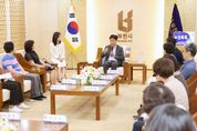 불탑뉴스신문사 차복원 기자 | 함안군은 지난 16일부터 19일까지 4일간 미국 로스앤젤레스 한인타운 내 서울국제공원에서 열린 제52회 로스앤젤레스 한인축제 농수산박람회에 참가해 지역 우수 농식품을 선보였다고 밝혔다. 이번 축제는 ‘경계선을 넘어서’를 주제로 개최됐으며, 1974년 처음 시작해 50년 이상의 역사와 전통을 가진 미국 서부 지역 최대 규모 한인 축제다. 매년 30만 명 이상이 방문하는 대표 행사로, 올해는 약 200여 개의 홍보·전시 부스가 운영됐다. 경상남도에서는 함안군을 포함해 6개 시군이 참여해 지역 농특산물 홍보에 힘을 보탰다. 조근제 함안군수는 축제 기간 개막 행사와 농수산박람회 판촉 행사에 참석했으며, 현지 관련 기관을 방문하고 수출 상담을 진행하는 등 북미 시장 개척 활동을 펼쳤다. 함안군은 이번 박람회에서 수박 가공품, 단감 가공품, 전통 장류, 곡류 등 지역에서 생산한 17종의 농식품을 전시했다. 미국 현지 한인 소비자들에게 친숙한 품목과 수출 유망 농식품으로 구성해 판촉 행사를 진행했으며, 현지 바이어를 대상으로 수출 협력 확대를 위한 상담도 함께 진행했다. 조 군수는