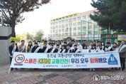 불탑뉴스신문사 차복원 기자 | 울산광역시교육청은 6일 오전 8시에 울주군 울주명지초등학교 앞 어린이보호구역에서 ‘민·관·경이 함께하는 등굣길 교통안전 홍보 활동(캠페인)’을 펼쳤다. 이번 홍보 활동은 지역사회 협력으로 어린이보호구역 내 교통사고를 예방하고, 학생이 안심하고 학교에 다닐 수 있는 교통안전 문화를 확산하고자 마련됐다. 이날 행사에는 천창수 교육감을 비롯해 김종훈 울산광역시의회 의원, 울산시청, 울주군청, 울산울주경찰서, 강남교육지원청 관계자와 울주명지초등학교 학생과 교직원 등 50여 명이 함께했다. 참여자들은 어깨띠를 두르고 학교 정문에서 출발해 인근 횡단보도와 아파트 단지 주변을 돌며 교통안전 홍보 활동을 벌였다. 무인단속카메라, 신호기, 보도 안전울타리 등 보호구역 내 안전시설을 점검하고, 등굣길 학생들에게 교통안전 홍보 스티커가 부착된 구급함 밴드 세트와 교통안전 안내문을 나눠줬다. 현장에서는 학생들에게 ‘어린이 안전 수칙 일이삼사(일단 멈춤, 이쪽저쪽 살피기, 삼 초 동안 주의, 사고 예방)’ 등의 보행 수칙을 알리고, 시민들에게는 ‘안전속도 5030’, ‘어린이보호