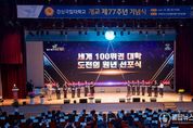 불탑뉴스신문사 차복원 기자 | 경상국립대학교는 10월 20일 오전 10시 가좌캠퍼스 GNU컨벤션센터 2층 대강당에서 개교 77주년 기념식을 개최했다. 개교기념식은 개식, 국민의례, 대학 연혁 보고, 개척시 낭송, 총장 기념사, 축사, 시상식, 비전 선포식, 교가 제창, 기념 촬영 등의 순으로 진행했다. 개교기념식 행사는 경상국립대학교 유튜브 채널을 통해 실시간 송출했다. 경상국립대학교는 기념식에서 각종 시상식[개척명예장, 총장 특별상, 개척한림원 표창, 7인의 영리서처(Young Researcher) 현판 수여, 장기근속상]을 마련하여 대학 발전에 기여한 교내·외 인사와 우수 연구자들의 공로를 기렸다. ▲개척명예장은 ㈜영남소방엔지니어링 류상수 대표에게 수여했다. 류상수 대표는 경상국립대학교 농업기계공학과를 졸업(1982년)했으며, 삼성공조(주), 안전보건공단 등을 거쳐 1996년에 ㈜영남소방엔지니어링에 입사 후 2005년 대표이사로 취임했다. 3월 14일 대학발전기금 1억 원을 출연하며 “나눔을 받아야 하는 대상은 많지만 모교 후배들의 장학을 위한 발전기금으로 기부하는 것이 무엇보다도 가치 있는 일이고, 그들로