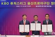 불탑뉴스신문사 한기석 기자 | KBO와 울산광역시(시장 김두겸)는 11월 5일(수) 울산시청에서 KBO 퓨처스리그 참가 협약을 체결했다. 이번 협약을 통해 울산시는 2026년 KBO 퓨처스리그 참가를 위한 선수단 구성과 행정절차를 KBO와 협의해 추진해나갈 예정이다. 또한, 문수야구장 관중석과 실내연습장 증설 및 유스호스텔을 2027년까지 완공하여 팀 훈련과 경기 진행, 선수단 숙소로 활용하는 등 안정적인 퓨처스리그 팀 운영 기반을 갖출 계획이다. KBO는 이번 협약이 지방자치단체가 주체가 되어 프로야구에 참여하는 의미 있는 사례로, 야구저변확대와 선수, 코칭스태프, 프런트 등 다양한 분야의 고용 창출 등을 통한 지역경제 활성화는 물론, 지역민들의 스포츠 관람 및 문화 향유 기회를 더욱 넓히는 계기가 될 것으로 기대하고 있다. KBO 이사회를 통해 울산시의 합류가 확정되면 퓨처스리그 남부리그에 편성될 예정이며, 2026 시즌부터 퓨처스리그는 북부 6팀, 남부 6팀 체제(현재 북부 5팀, 남부 6팀)로 재편해 리그 운영과 경기수 편성의 균형을 맞출 예정이다. 김두겸 울산광역시장은 “야구