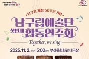 불탑뉴스신문사 송행임 기자 | 부산 남구는 오는 11월 2일 오후 17시 부산문화회관 대극장에서‘남구립예술단 합동 연주회 Together, We Sing’을 개최한다. 남구립예술단은 ▲소년소녀합창단(지휘 김주곤) ▲오륙도여성합창단(지휘 곽기웅) ▲욜드합창단(지휘 고영호)으로 구성되어 있으며, 남구를 대표하는 문화사절단으로 활발히 활동하고 있다. 이번 연주회는 남구청 개청 50주년을 기념하여 세 합창단이 처음으로 함께하는 합동 연주회라는 점에서 특별한 의미를 지닌다, 각 합창단의 개성과 감성을 담은 다채로운 무대를 통해 관객에게 풍성한 음악적 경험을 선사할 것으로 기대된다. 소년소녀합창단은 맑고 순수한 목소리로 음악극‘푸른 하늘 은하수’를 선보이고, 오륙도여성합창단은 ‘그리움 그리고 사랑’이라는 테마로 세대를 이어주는 따뜻한 감성의 하모니를 들려주며, 욜드합창단은 인생의 깊이와 여운이 느껴지는 ‘행복한 인생’이라는 감동의 무대를 마련했다. 특히 이번 공연의 하이라이트는 세 합창단이 함께 꾸미는 합동무대다. 서로 다른 세대의 목소리가 한 무대에서 하나의 선율로 어우러지며, 노래를 통해 마음을 나누고