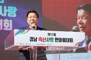 불탑뉴스신문사 한기석 기자 | 고성군은 경남도와 산청군이 주최하고 경남축산단체협의회와 경남농협이 주관한 ‘제11회 경남 축산사랑 한마음대회’가 10월 17일, 고성군 스포츠파크 4구장에서 개최됐다고 밝혔다. '미래를 여는 힘! 건강한 축산, 행복한 경남!'이라는 주제로 열린 이번 행사에는 박완수 도지사, 류길년 농협 경남지역본부장 등이 참석한 가운데 도내 축산농가 1000여 명이 참석해 성황을 이뤘다. 행사는 식전 축하공연을 시작으로 축산발전 유공자에게 도지사 표창 및 공로패 수여, 행사 퍼포먼스에 이어 축종 별 우수 축산물 시식회, 축산물 소비촉진 행사, 축산물을 이용한 소비자 체험, 축산기자재 홍보 및 전시관 운영, 어울림 한마당 등 다양한 프로그램으로 진행됐다. 이상근 고성군수는 환영사에서 "최근 사료값 인상과 인건비 상승, 가축전염병 발생 증가 등으로 축산인이 어려움을 겪고 있다"라며, "꿋꿋하게 현장을 지켜온 축산인들의 화합과 단결로 축산업의 미래를 모색하는 소중한 자리가 되길 바란다"라고 전했다. 한편 이날 시상식에서는 축산과 박경민 주무관이 축산발전유공 도지사상을, 축산과 축산행정담당