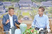 불탑뉴스신문사 차복원 기자 | 오영훈 제주특별자치도지사는 12일 도청을 방문한 손솔 진보당 국회의원과 제주 관광 및 문화 육성 등에 대한 의견을 나눴다. 국회 문화체육관광위원회 소속인 손솔 의원은 이날 진보당 김명호 제주도당 위원장, 양영수 제주도의회 의원과 함께 도청을 찾아 제주지역 발전방안을 논의했다. 오영훈 지사는 이 자리에서 제주 관광 발전을 위한 국회 차원의 지원과 내년 전국체육대회 제주 개최와 관련한 국비 지원 현실화 등의 필요성을 강조했다. 손 의원은 제주지역의 관광과 문화, 케이(K)-컬처 확산 등에 관심을 표명하며 국회에서의 지원과 협력을 약속했다. 또한 제주도가 적극 추진하고 있는 휴가지 원격 근무(워케이션)와 배움여행(런케이션)에 대해서도 의미있는 정책이라고 공감을 나타냈다. 특히 손 의원은 제주에서 시행 중인 이동노동자 쉼터 ‘혼디쉼팡’이 전국적인 모범사례가 되고 있다고 평가했다. 아울러 이날 면담에서는 정기국회에서 제주도 관련 법안 및 지원 등을 위한 협력 방안도 함께 논의됐다. 오영훈 지사는 “손 의원의 제주 방문이 제주 관광산업 발전과 문화 진흥에