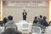 불탑뉴스신문사 차복원 기자 | 서울 중구가 지난 20일 중구청에서 '중구 기업도약든든펀드 투자설명회'를 열고, 성장 잠재력이 높은 중소·벤처기업을 대상으로 투자 유치와 성장 지원 계획을 밝혔다. 이번 설명회는 중구와 펀드운용사인 비에이파트너스가 공동으로 주관했으며, 지난 8월 중구가 출자한 벤처투자조합 결성 후 225억 규모의 펀드 본격 운용에 맞춰, 유망기업을 발굴하고 기업들의 투자유치 기회를 제공하기 위해 마련됐다. 이날 설명회에는 중구 소재 기업 및 중구로 이전을 희망하는 유망기업 등 약 35개사가 참여했다. 1부 투자설명회에서는 비에이파트너스와 유진투자증권에서 펀드 운용방향과 투자 기준, 2026 벤처투자 시장 및 IPO 전망, 투자 가능성을 높이는 IR 전략 등을 주제로 강연을 펼쳤다. 2부 투자상담에서는 사전 신청을 통해 선정된 기업들이 펀드운용사와 개별 상담을 진행하며 기업별 투자 가능성을 구체적으로 논의했다. 또한 현장에는 기업홍보존이 운영되어 참여기업들의 제품 전시와 시연을 통해 기술력과 아이디어를 직접 선보였다. 이를 통해 투자자와 기업 간 교류의 장이 자연스럽게 형성되며, 지역